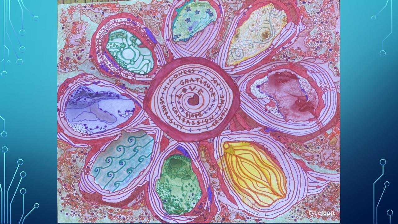 Kin and Community: Fyre Jean Graveline Art Response, a previous class with Stillpoint. She works with Flower Power at 27:45 minutes.