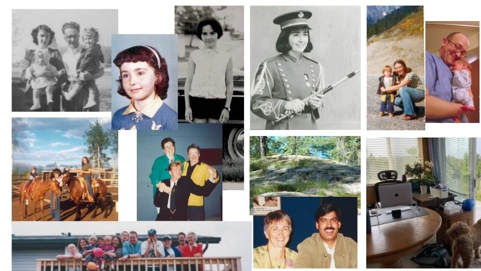 Each person in the family photo was having their own experience the day that picture was taken. I loved that butterfly sweater in my grade 2 picture and the old woman across the street told me I looked like Elizabeth Taylor. I had a child and he has three. My glamorous sweet friend Donnie died of AIDS. I had a rustic cabin on a lake in western Canada, and now I have a tiny house at the ocean in Nova Scotia where I live alone with my dog Shantih and close to my son and family.