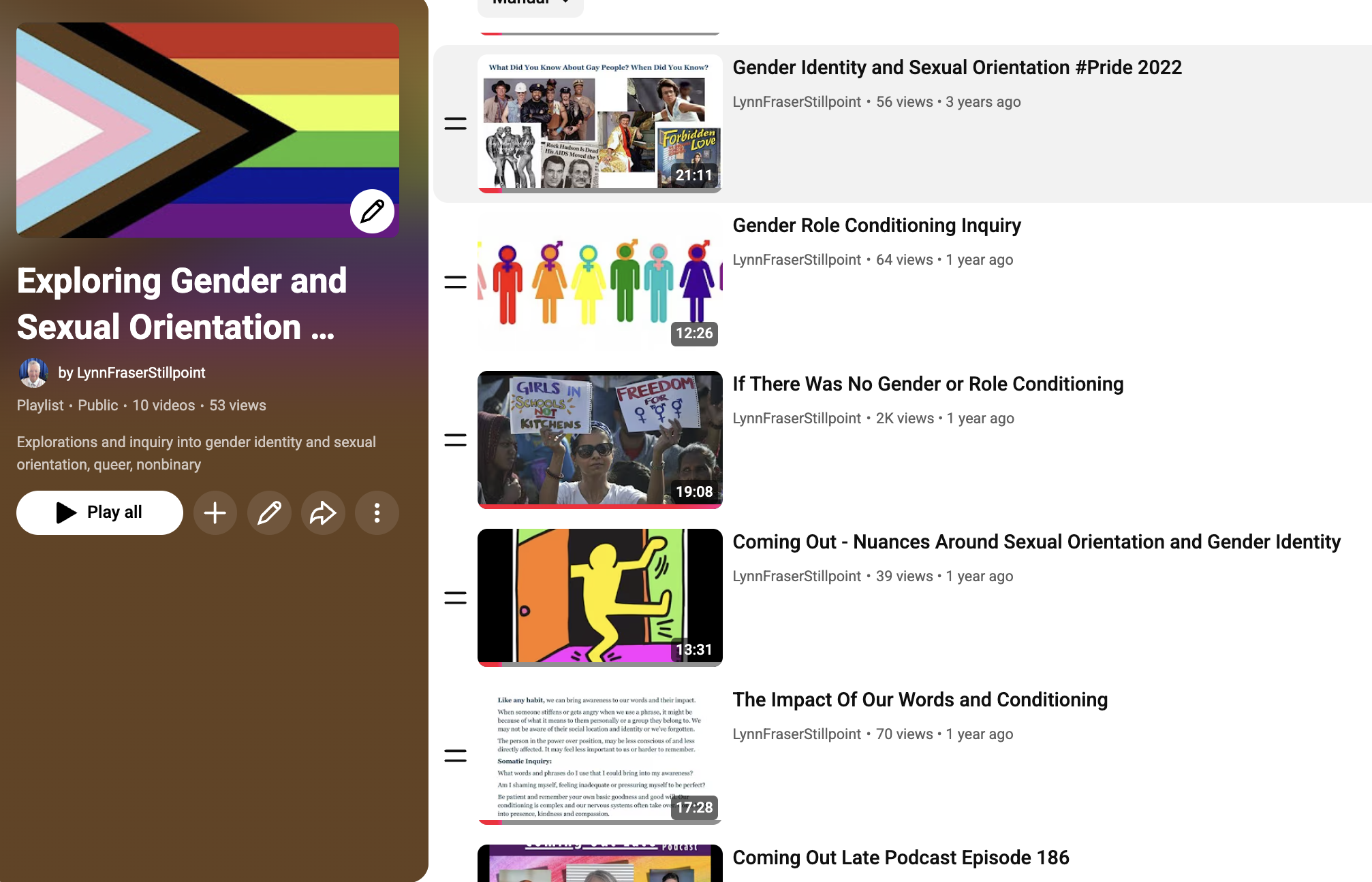 Link to my YouTube playlist with a variety of Queer oriented inquiries.